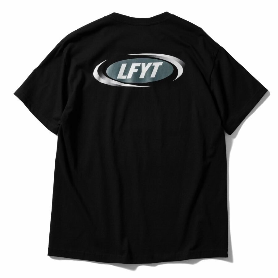 エクストリームスポーツをモチーフにしたオーバル型グラフィックのプリントTシャツ。