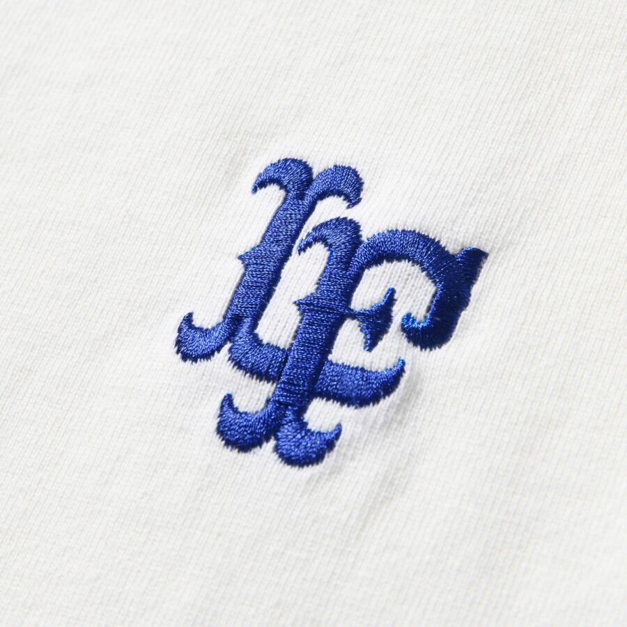 LFロゴを刺繍で配したシンプルなワンポイントデザインで、幅広いスタイルにマッチ。