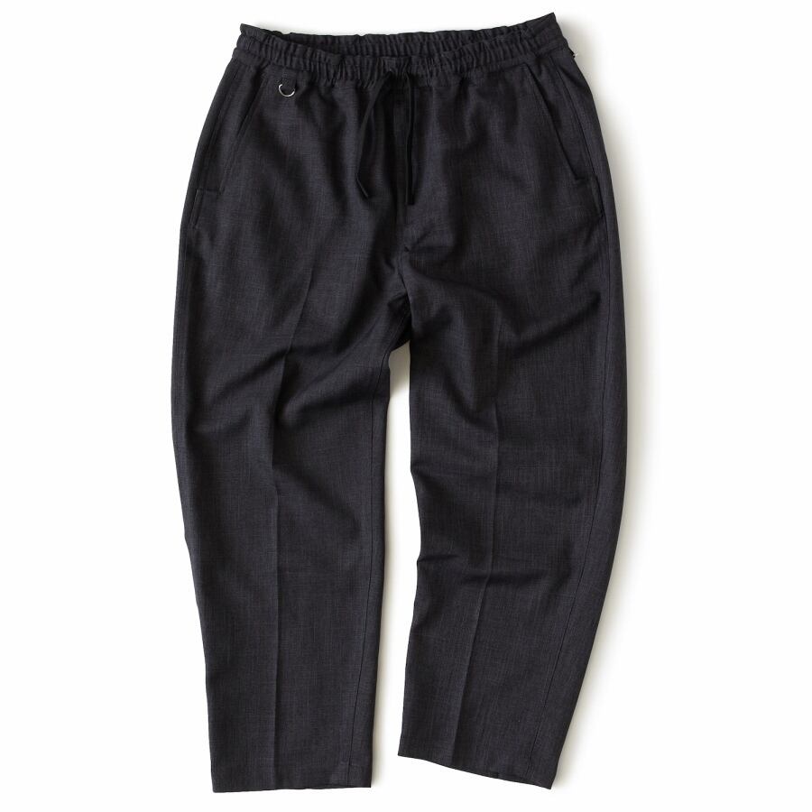 程よい肉感のポリエステルシャークスキン素材を使用したイージーパンツ。