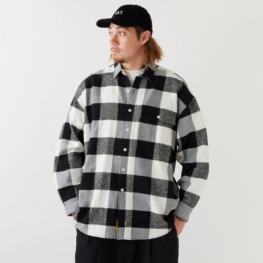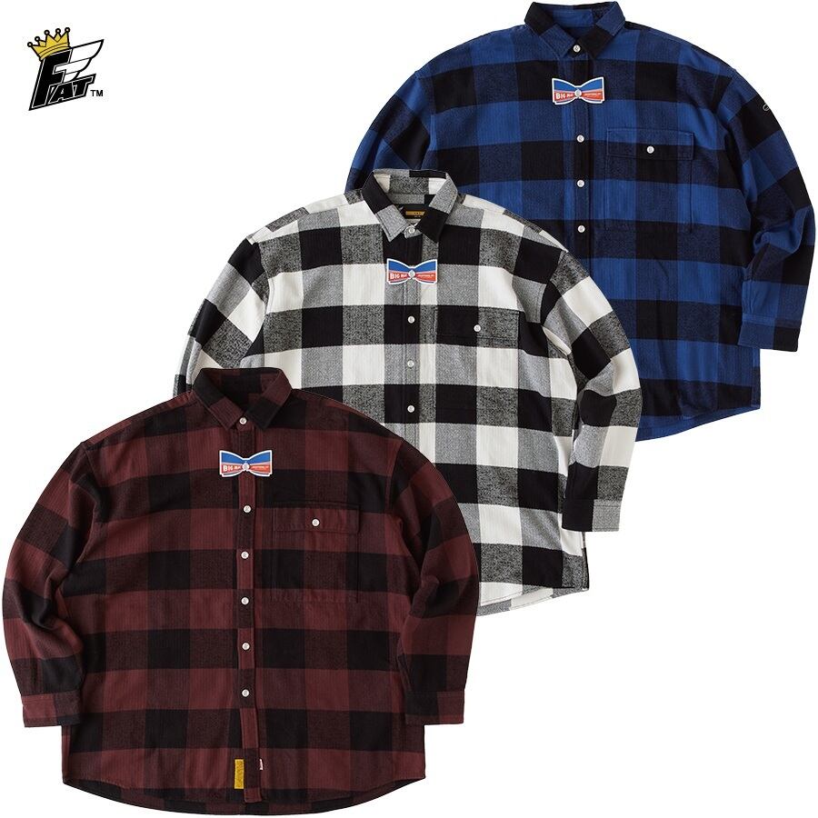 FAT×BIG MACのコラボレーションによるネルシャツは、オリジナルの肉厚ブロックチェック素材が印象的。
