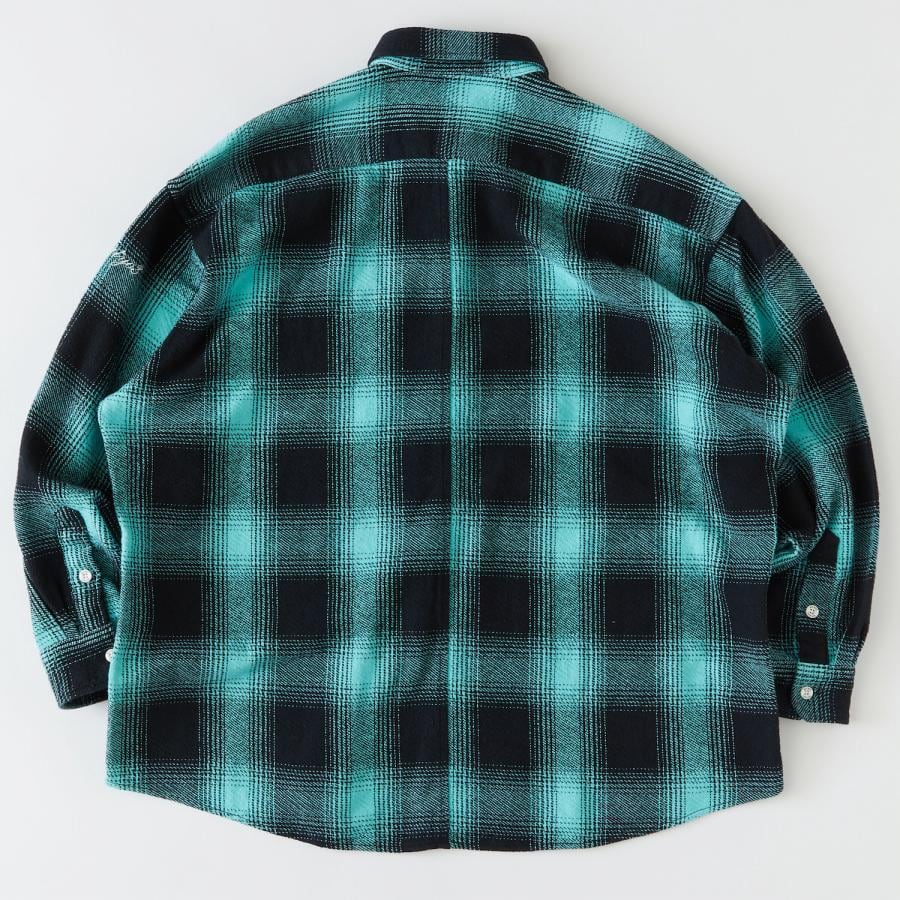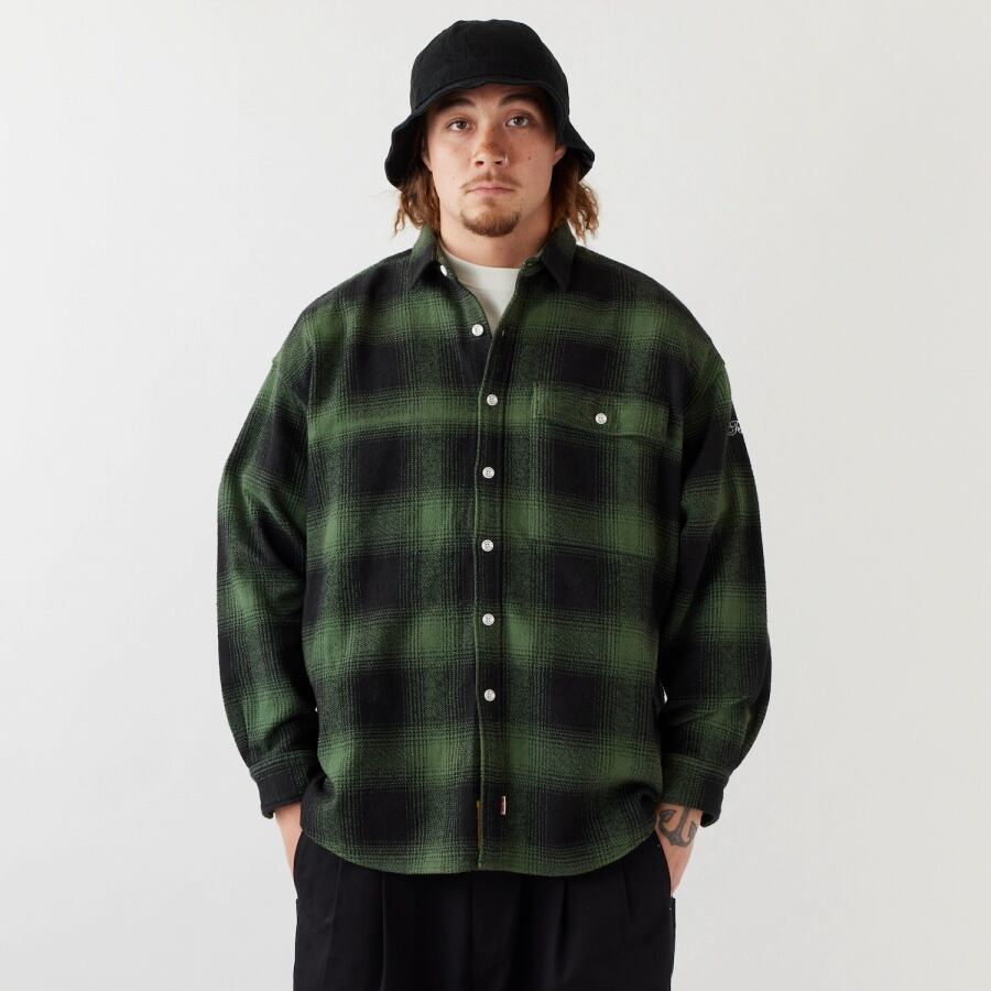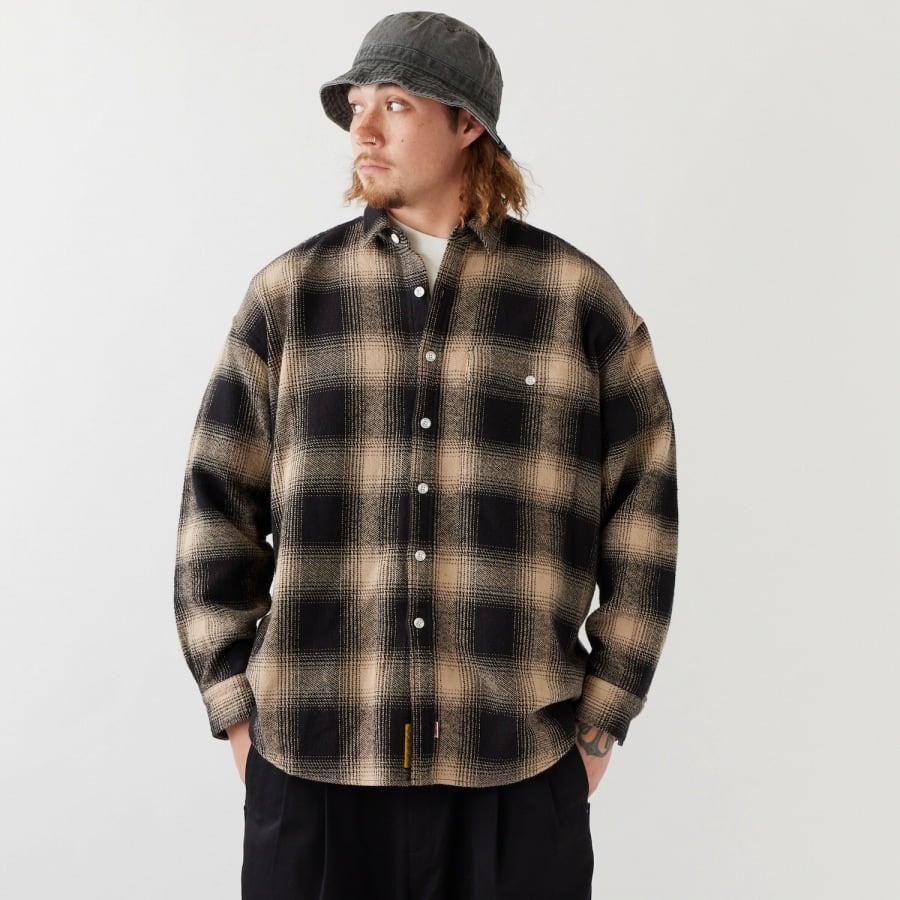 FAT×BIG MACのコラボレーションによるネルシャツは、オリジナルの肉厚オンブレチェック素材が印象的。