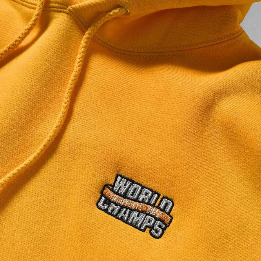 左胸にLFYTのスポーツラインを象徴する「WORLD CHAMPS」のデザインが刺繍されたプルオーバーフーディー。