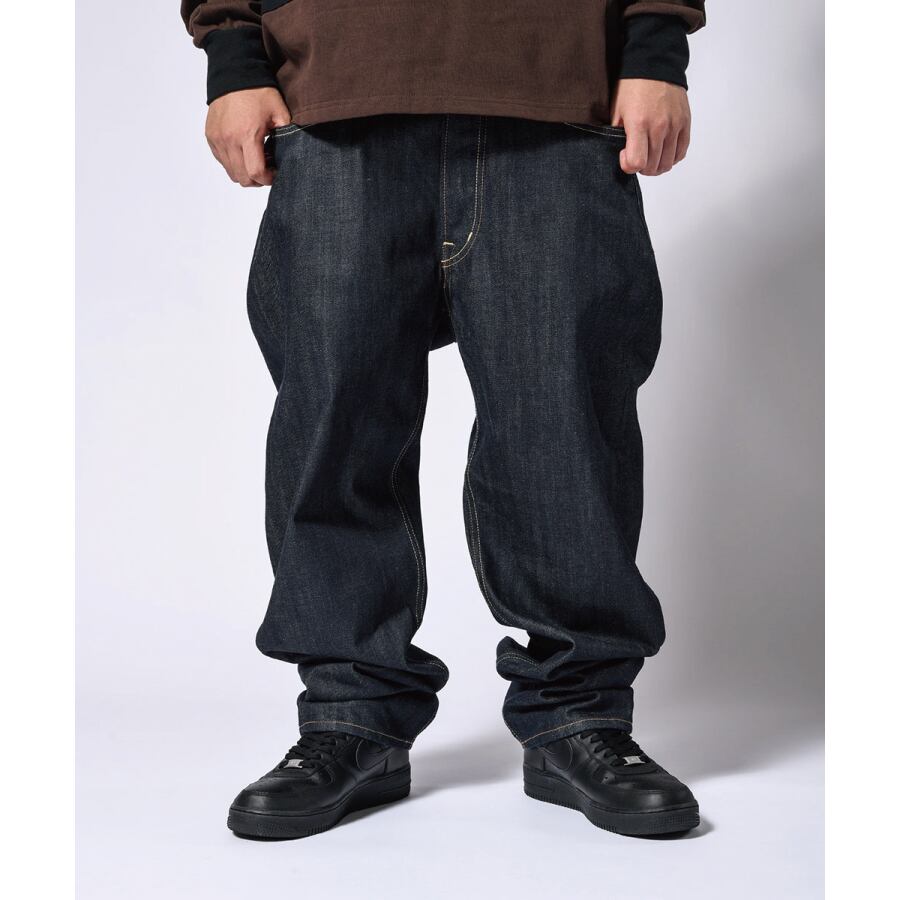極太のシルエットにテーパードをきつく利かせた独自のシルエットが最大の魅力となっている12オンスデニム仕様のバギーフィットデニムパンツ。