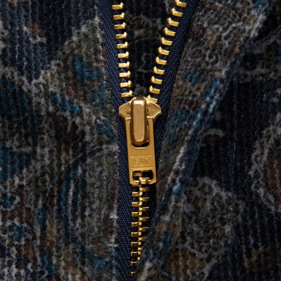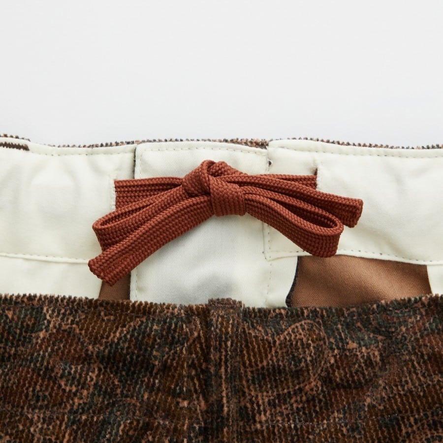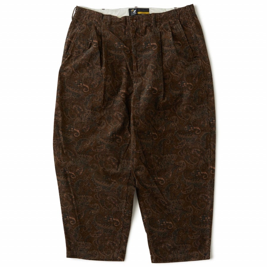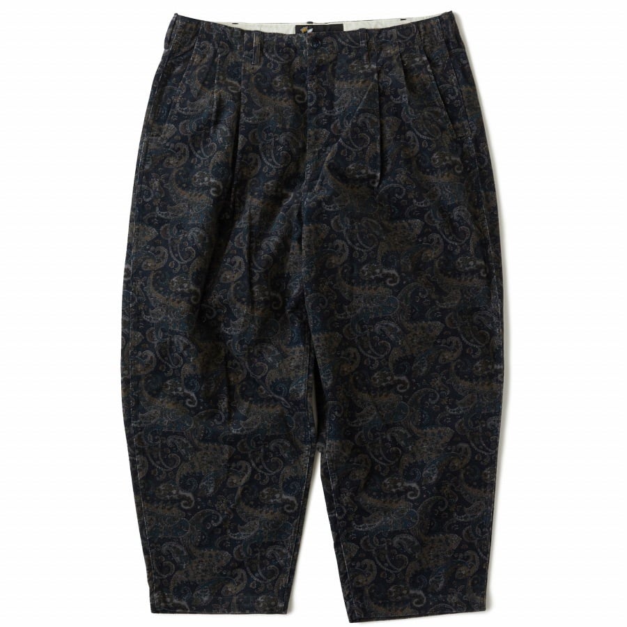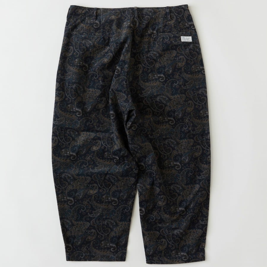 絶妙なカラーリングのペイズリープリントを施したコーデュロイ素材を使用したワイドパンツ。