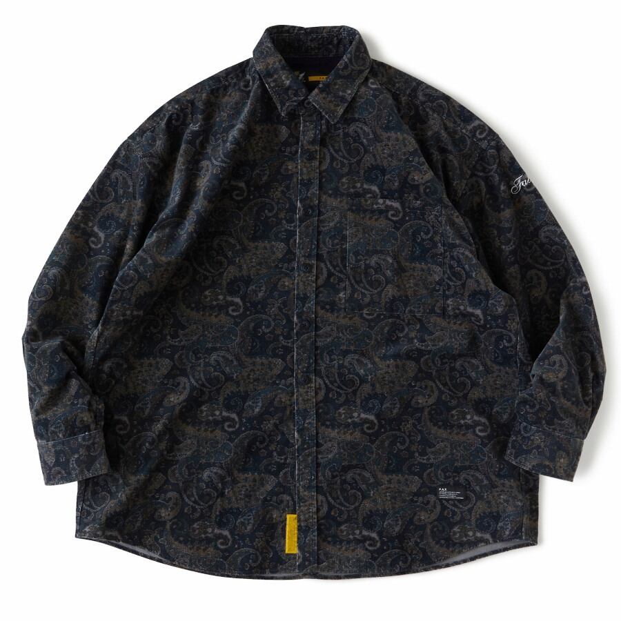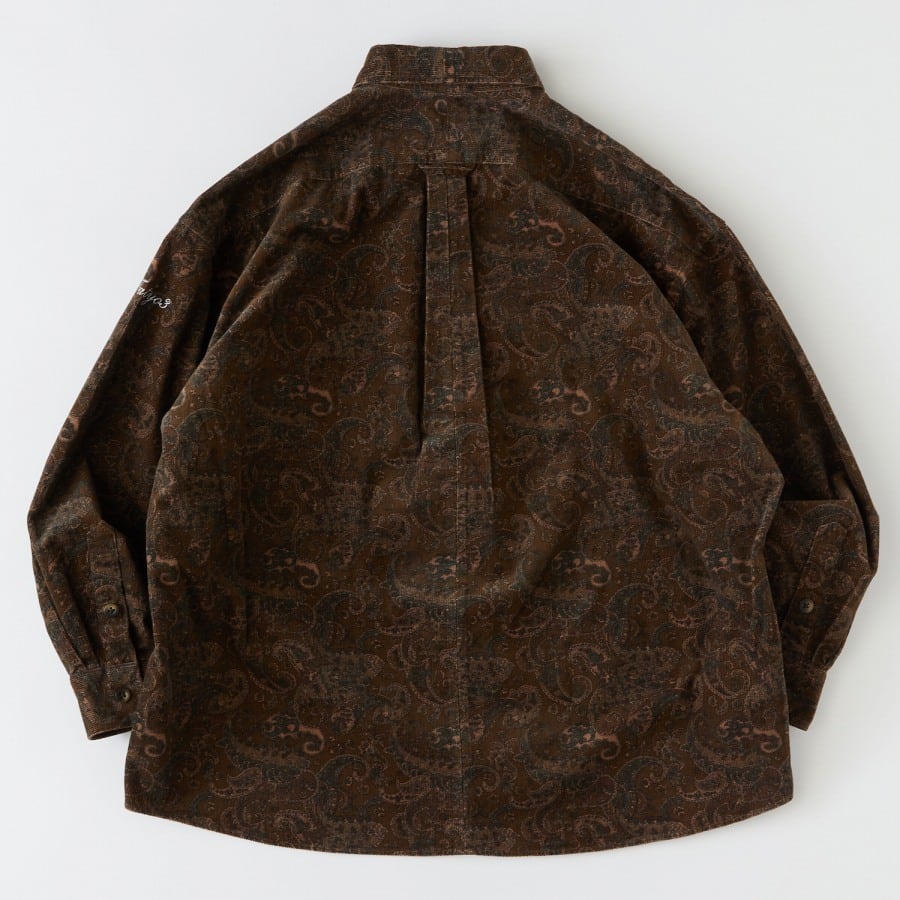 絶妙なカラーリングのペイズリープリントを施した太畝コーデュロイを使用した、通常よりも身幅・肩幅にゆとりをもたせたBIGシルエットが印象的なシャツ。