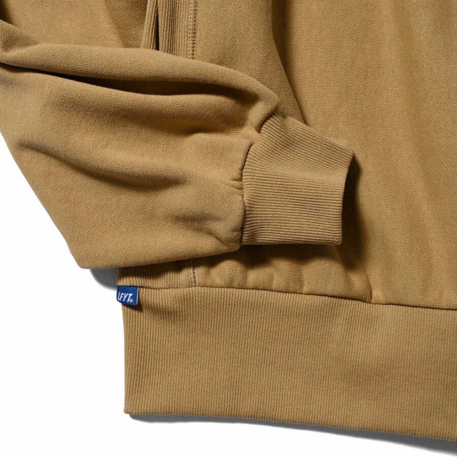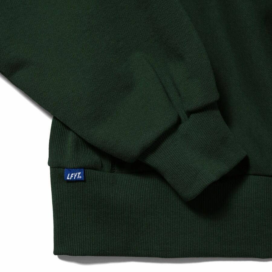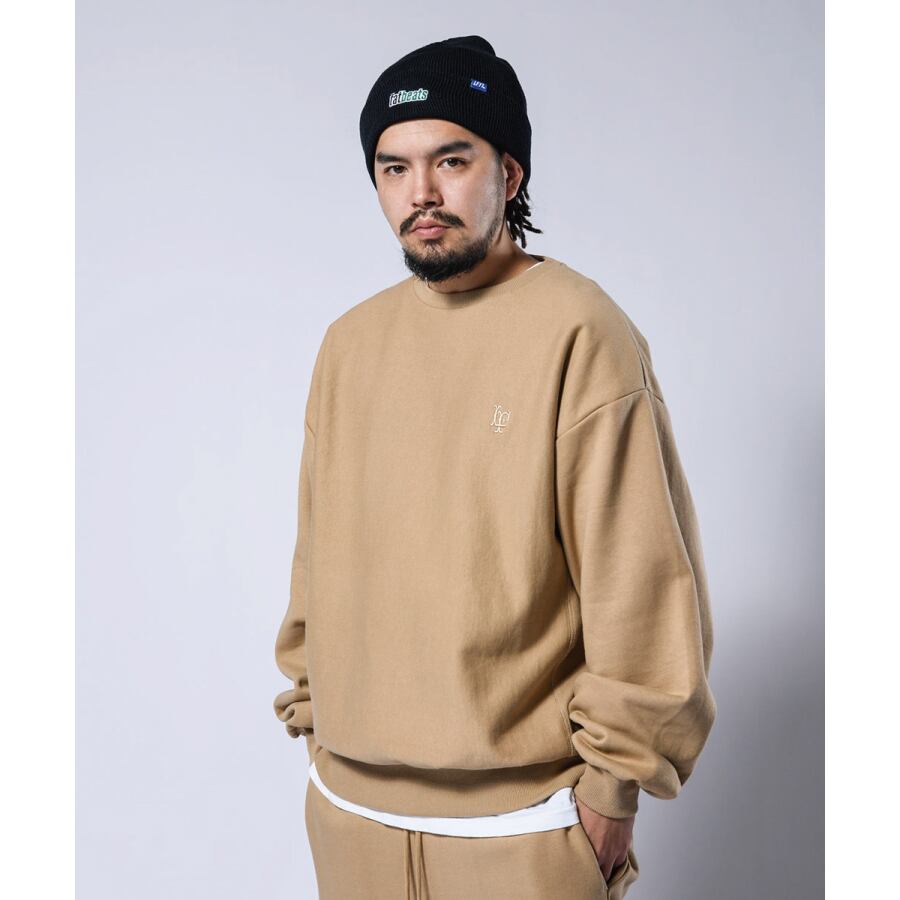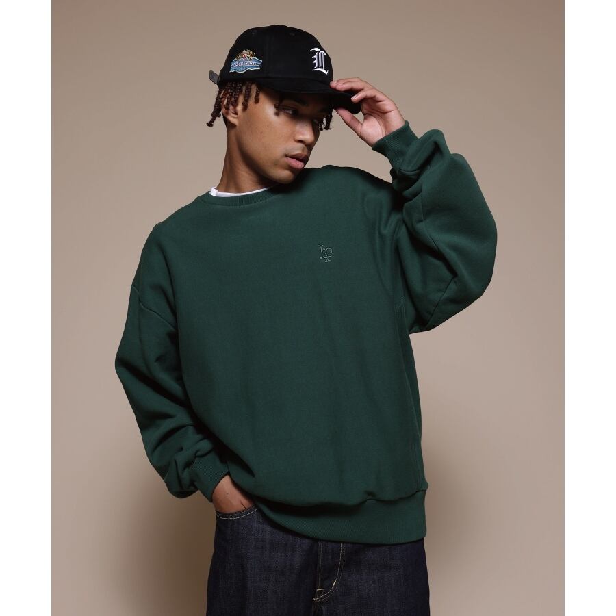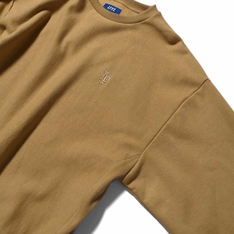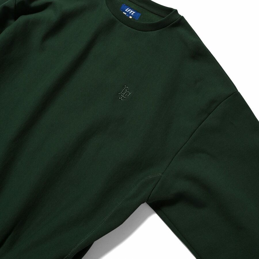 左胸に小さくLFロゴを刺繍したシンプルなクルーネックスウェット。
