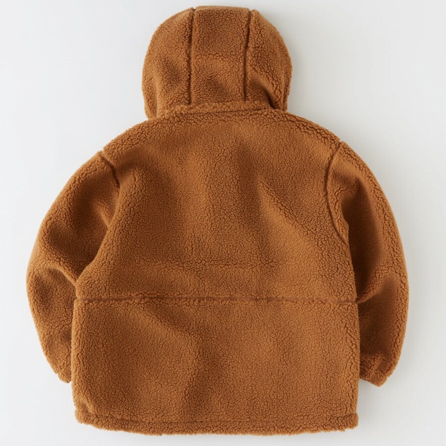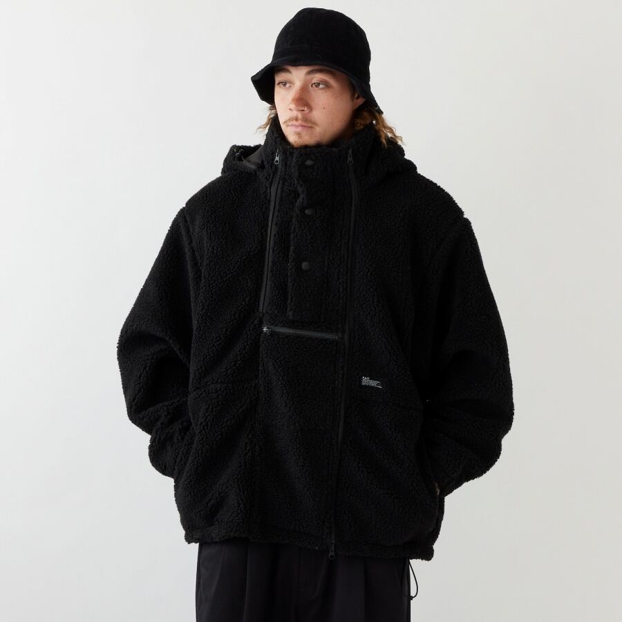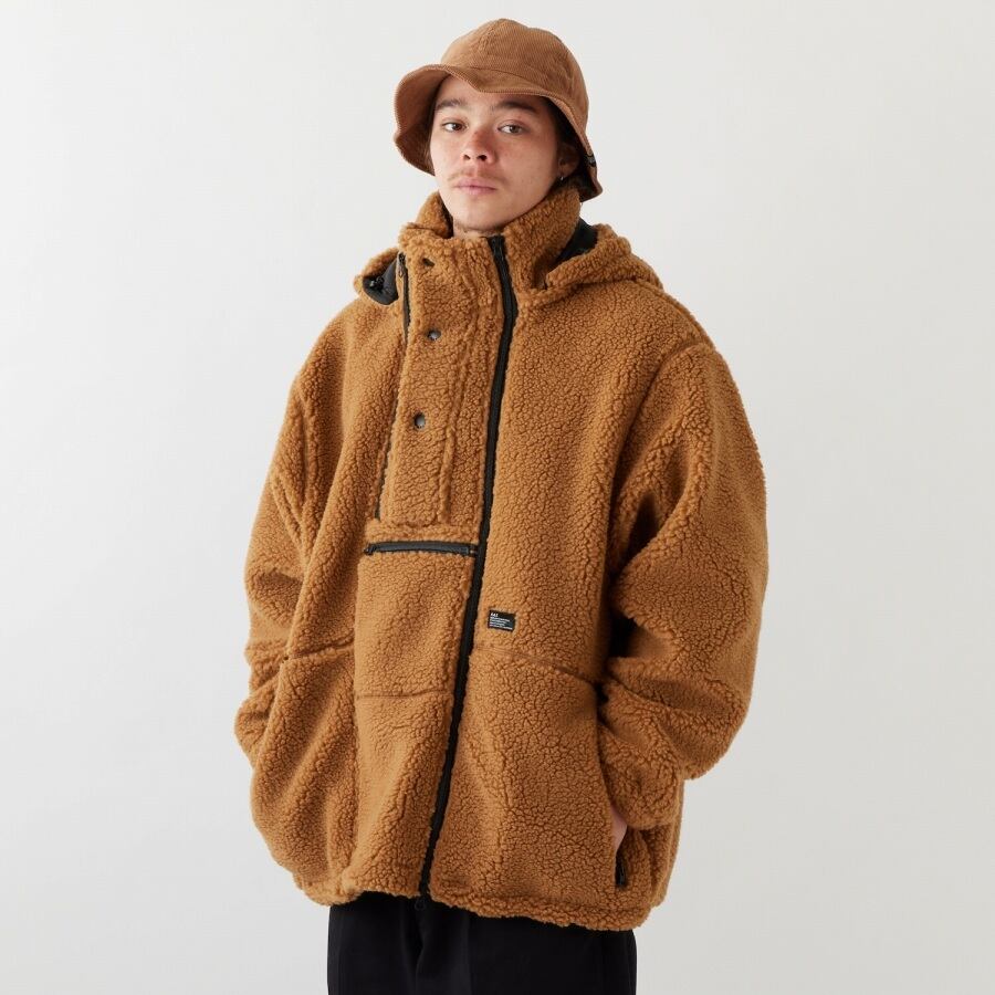 毛足の長いボアフリースを使用したジップブルゾンは、開け方を調節することで様々なコーディネートが楽しめるフロントジップが印象的。