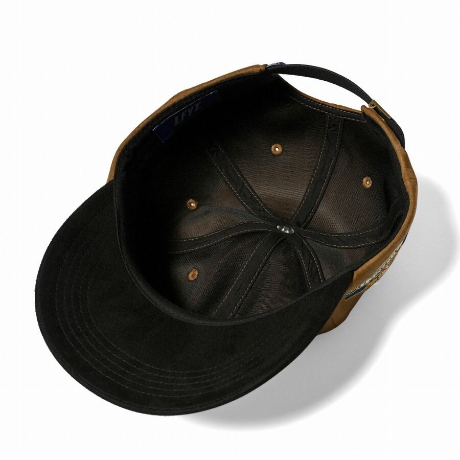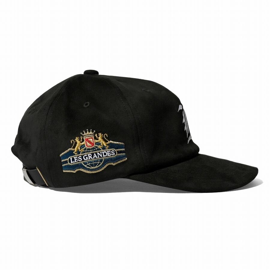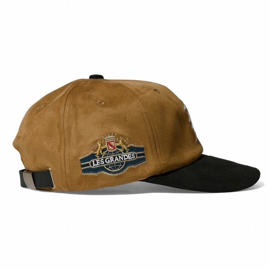 フェイクスエード生地を使用した高級感あふれるストラップバックキャップ。