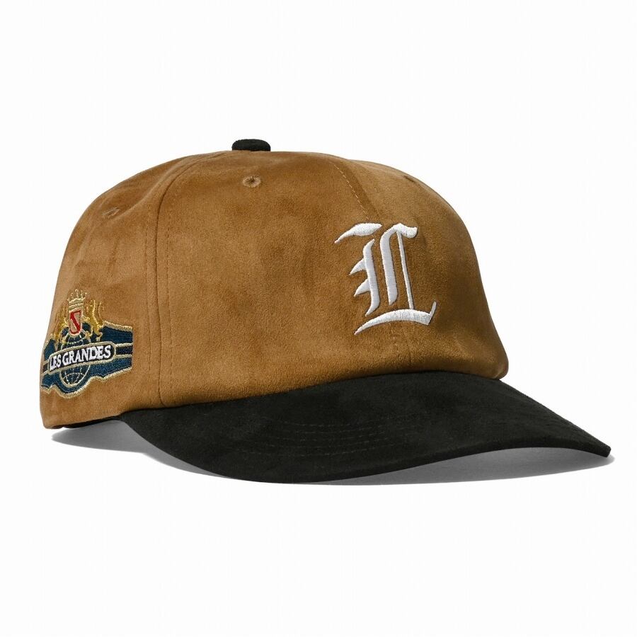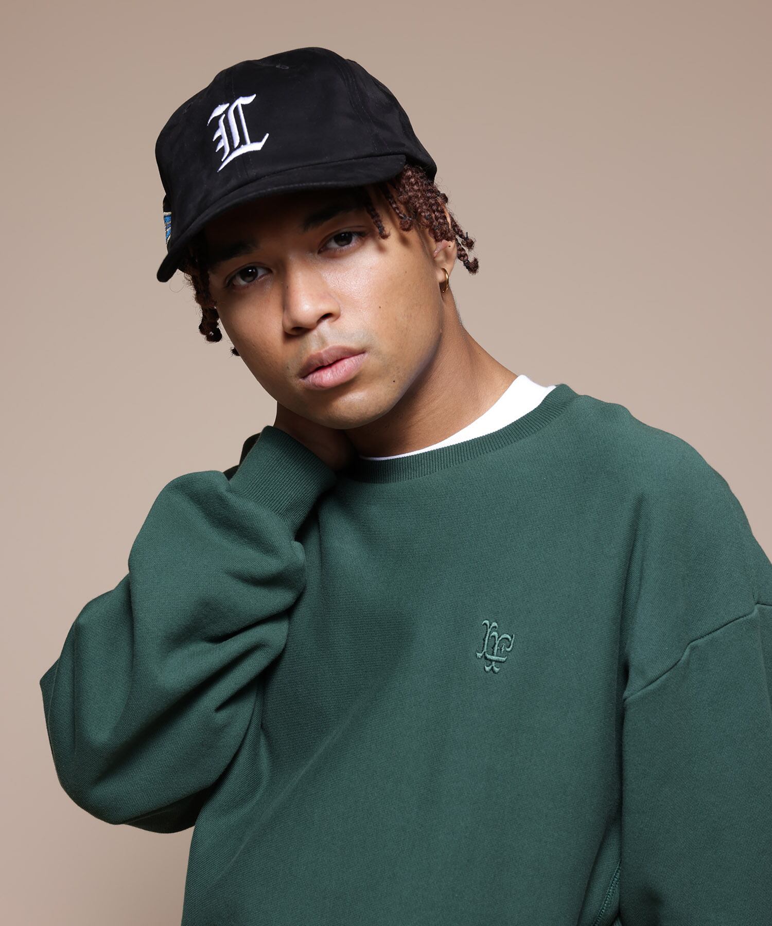 フロントクラウンにオールドイングリッシュ調のLロゴの刺繍と、サイドにはエンブレムデザインを刺繍。