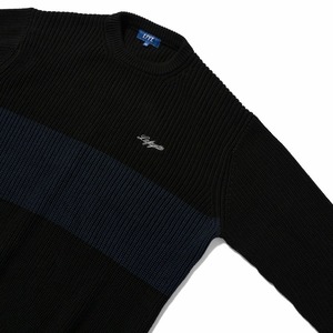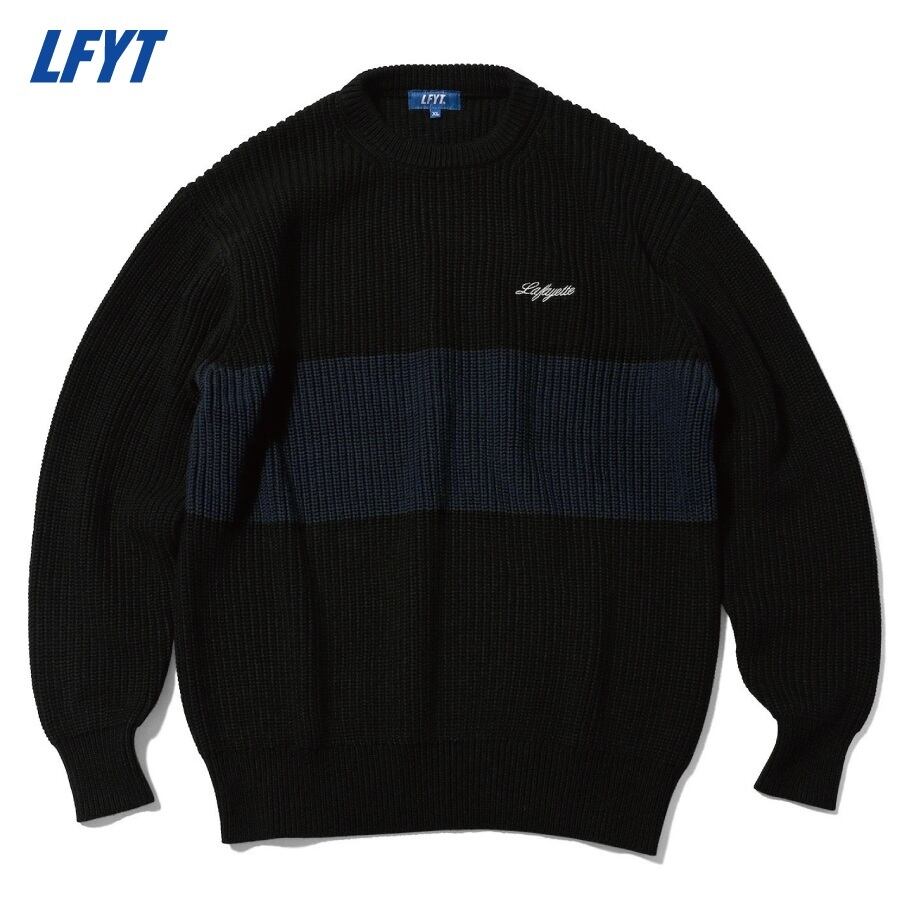 左胸にスクリプトフォントのLafayetteロゴを刺繍した2トーンのローゲージニットセーター。