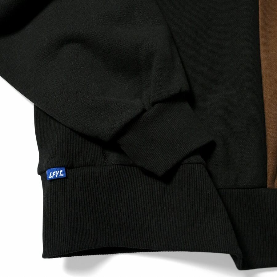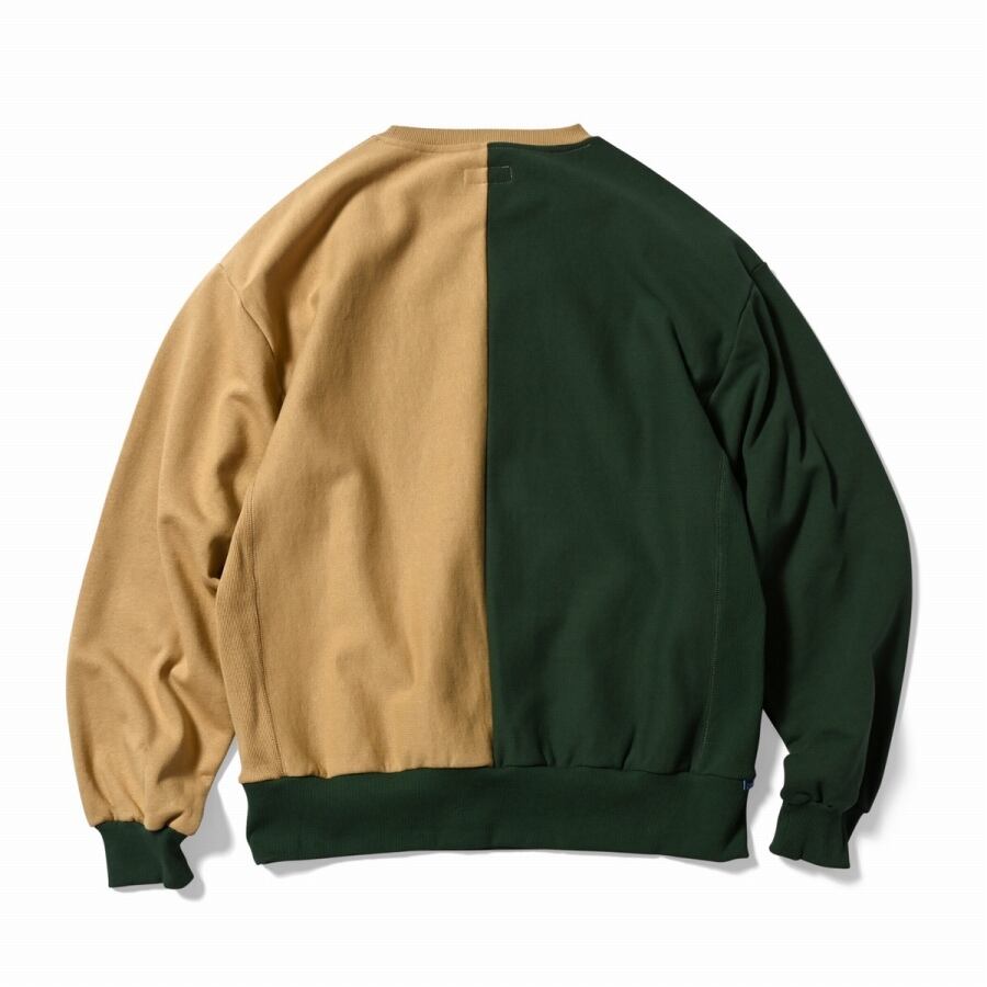 リメイクウェアをイメージした大胆に切り替えによる2トーンカラーのUSコットンクルーネックスウェット。