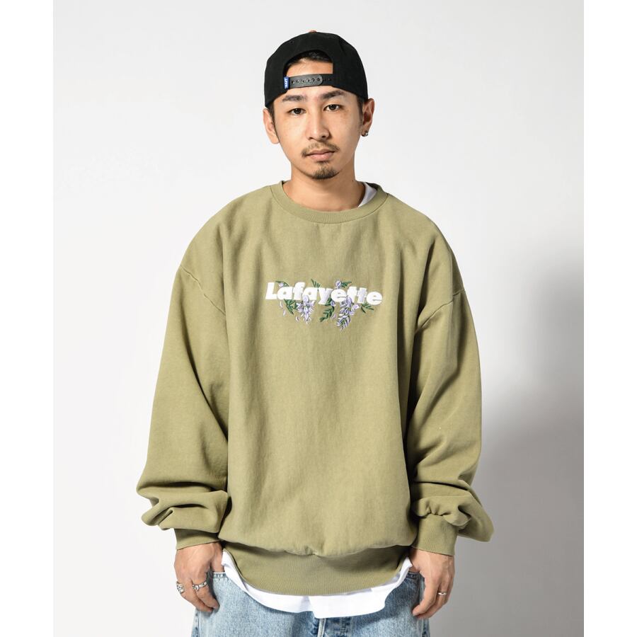 Lafayetteのコアロゴとウィステリアの刺繍をバランスよく配したUSコットンボディのクルーネックスウェット。
