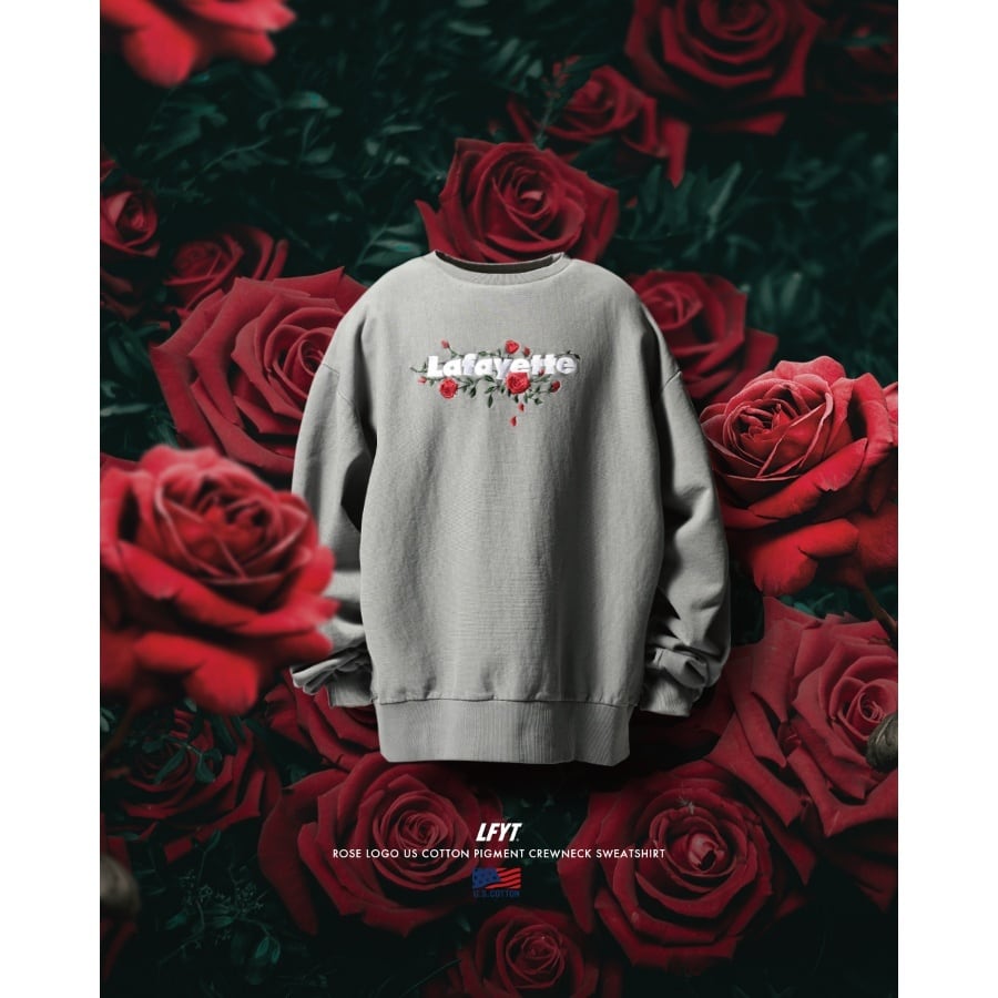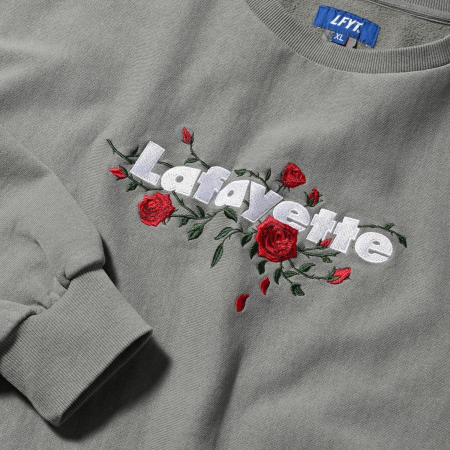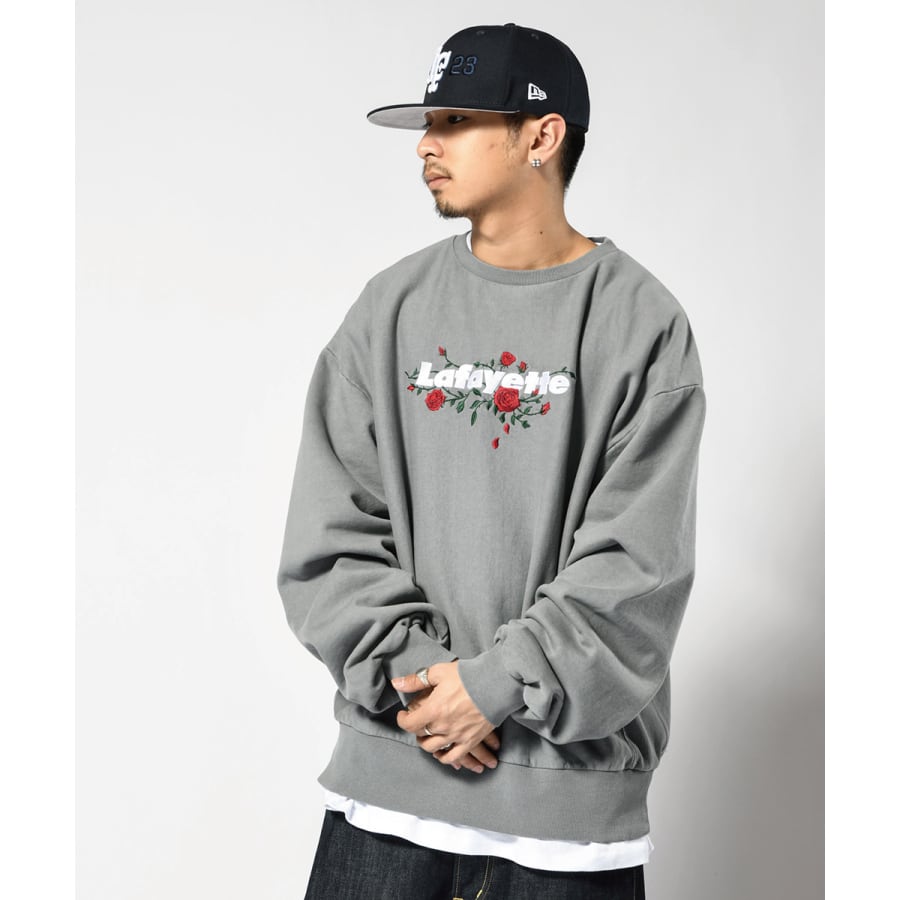 Lafayetteのコアロゴとローズの刺繍をバランスよく配したUSコットンボディのクルーネックスウェット。