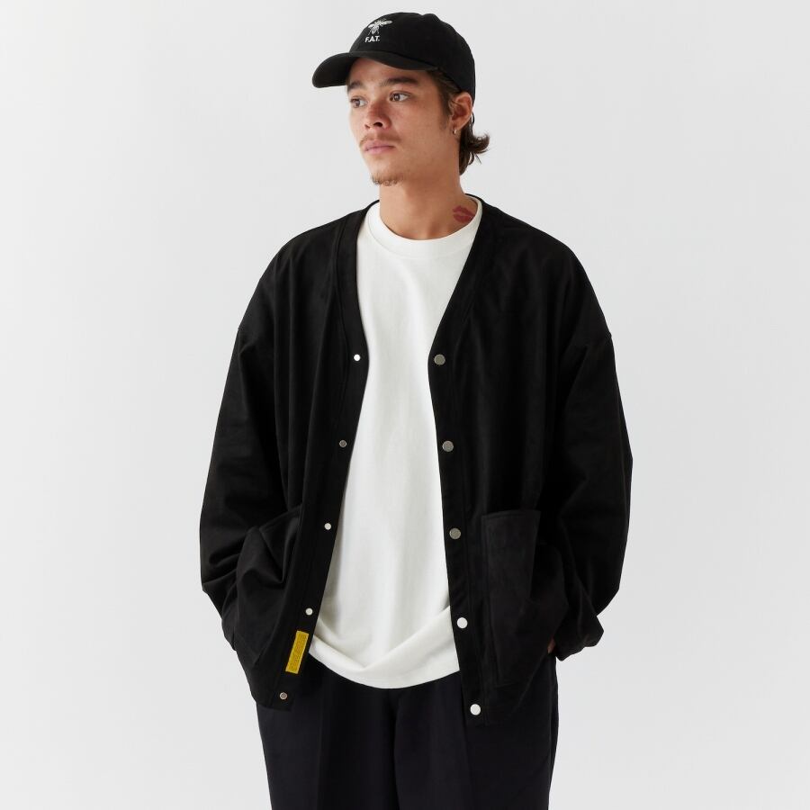 肌触りの良いフェイクスエードを使用したスナップカーディガン。