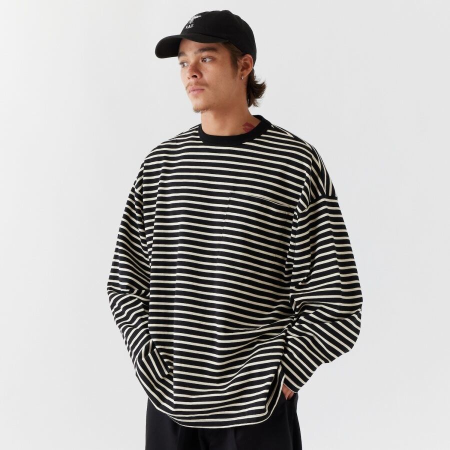 シンプルなボーダーパターンが印象的なロングスリーブカットソー。
