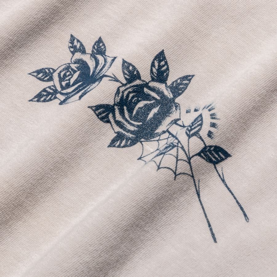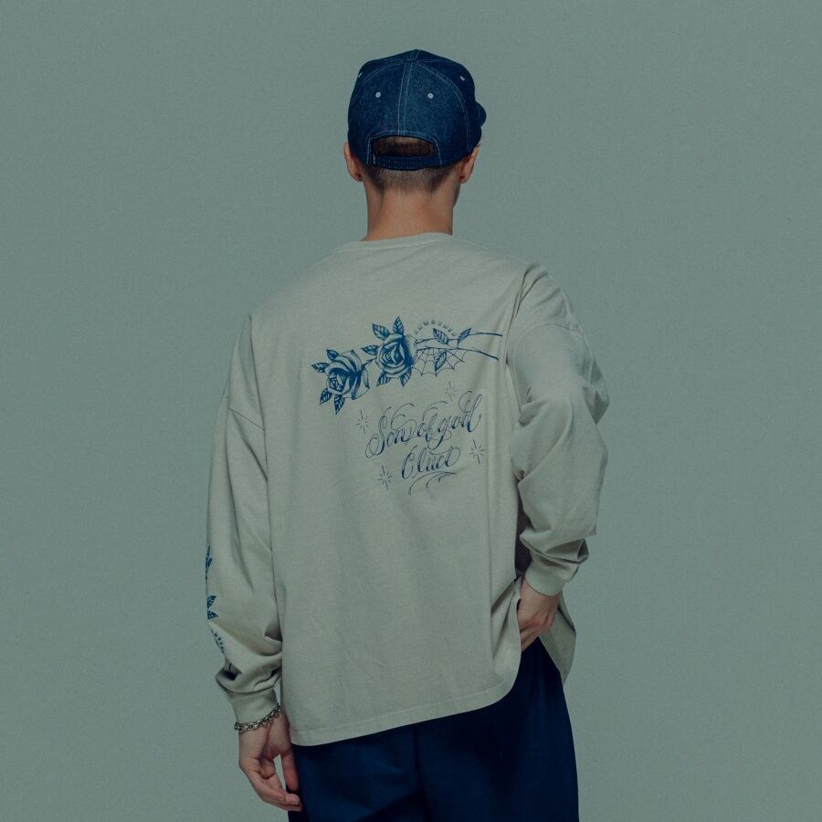 JOYTOWN TATTOO STUDIO KAJI氏による細いラインのグラフィックが雰囲気を醸し出し、またゆったりとしたサイジングが気心地の良い幅広く活躍する1枚です。