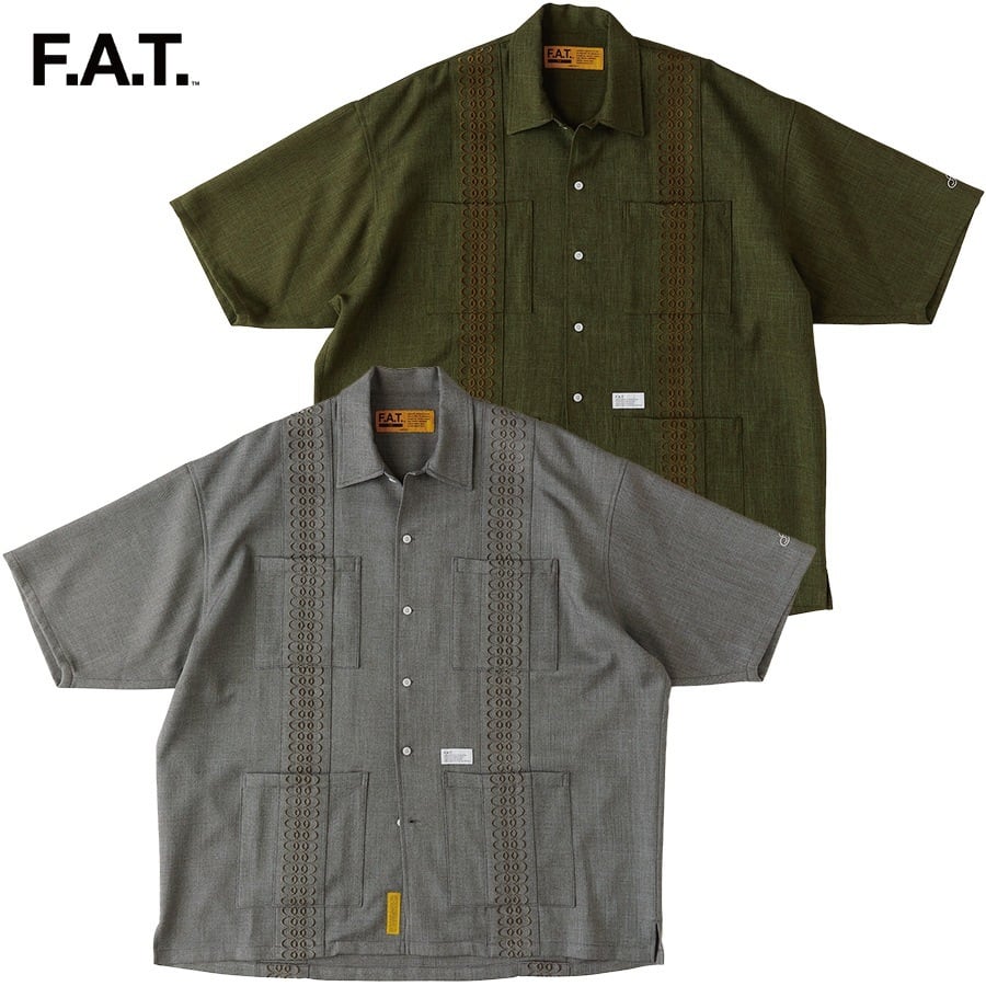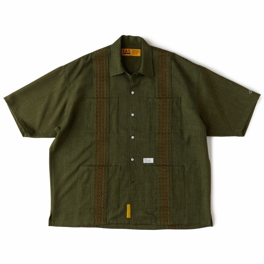 オリジナルパターン刺繍が印象的な半袖キューバシャツ。