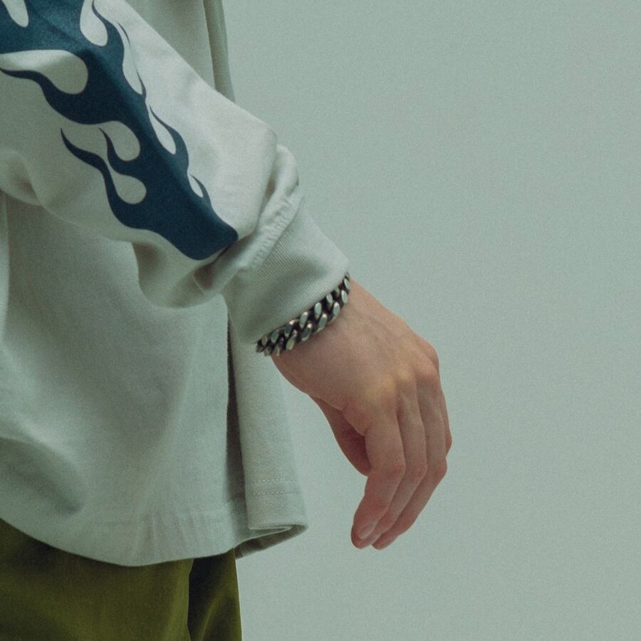 真鍮でできたやや太めで重厚感あるシルバーメッキ仕様のオリジナル喜平ブレスレット。