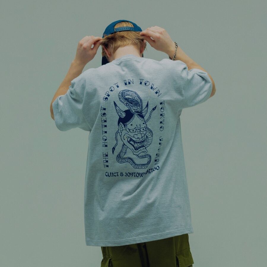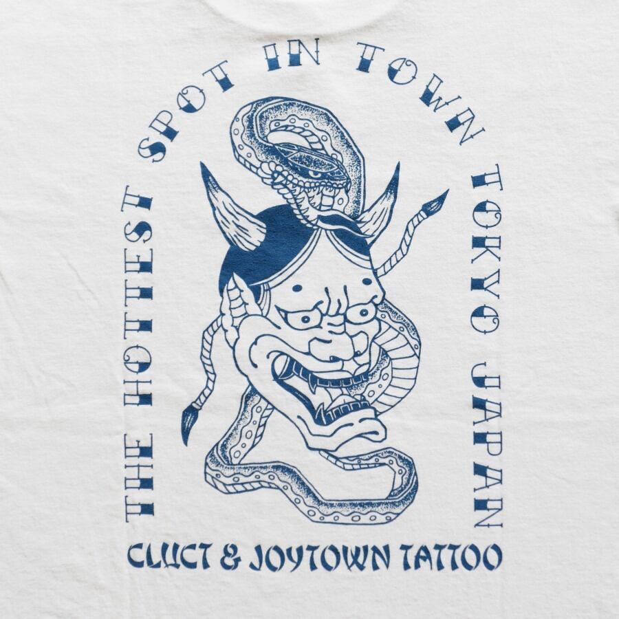 グラフィティーアーティストREMIO氏、JOYTOWN STUDIOのKaji氏と、CLUCTのトリプルネームによるTシャツ。