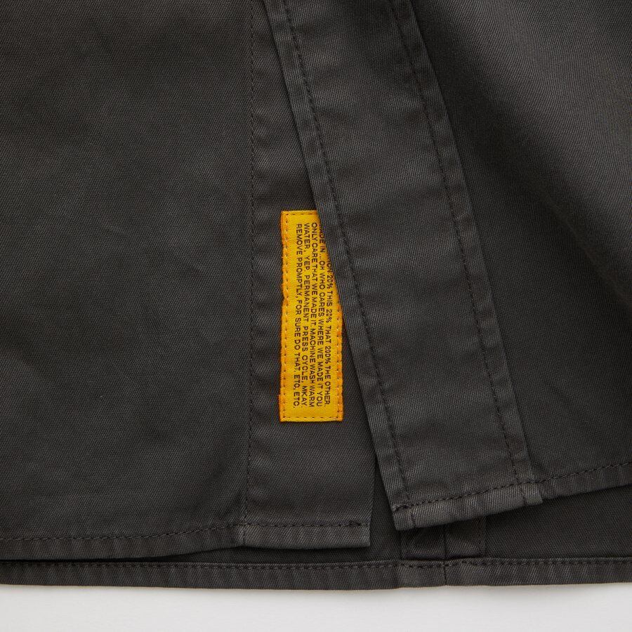 背中や衿まで左右切り替えになった独特の仕様で、ルーズになりすぎないレングスや袖周りはボリュームのあるボトムスを合わせていつもとは違うカジュアルコーディネートを楽しみたい。
