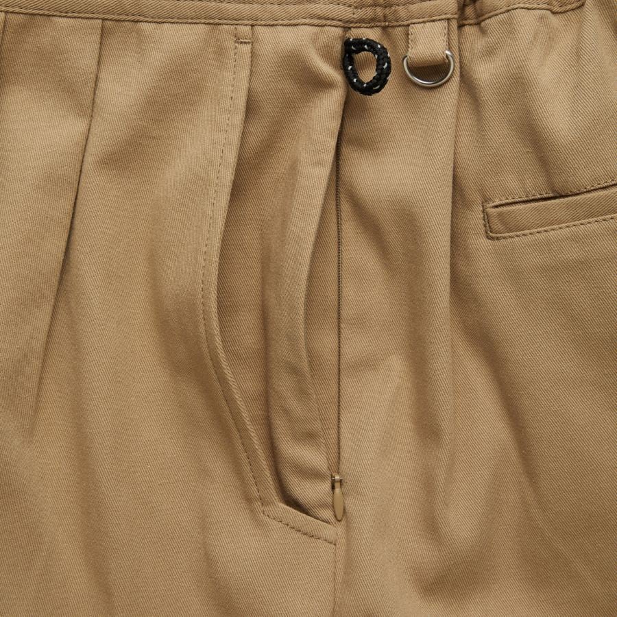 CookmanオリジナルのT/Cストライプを使用しつつも、ウエストにタックを取り、バックのみにゴムを入れるなどワークテイストとクリーンスタイルをミックスさせた絶妙な仕上がり。
