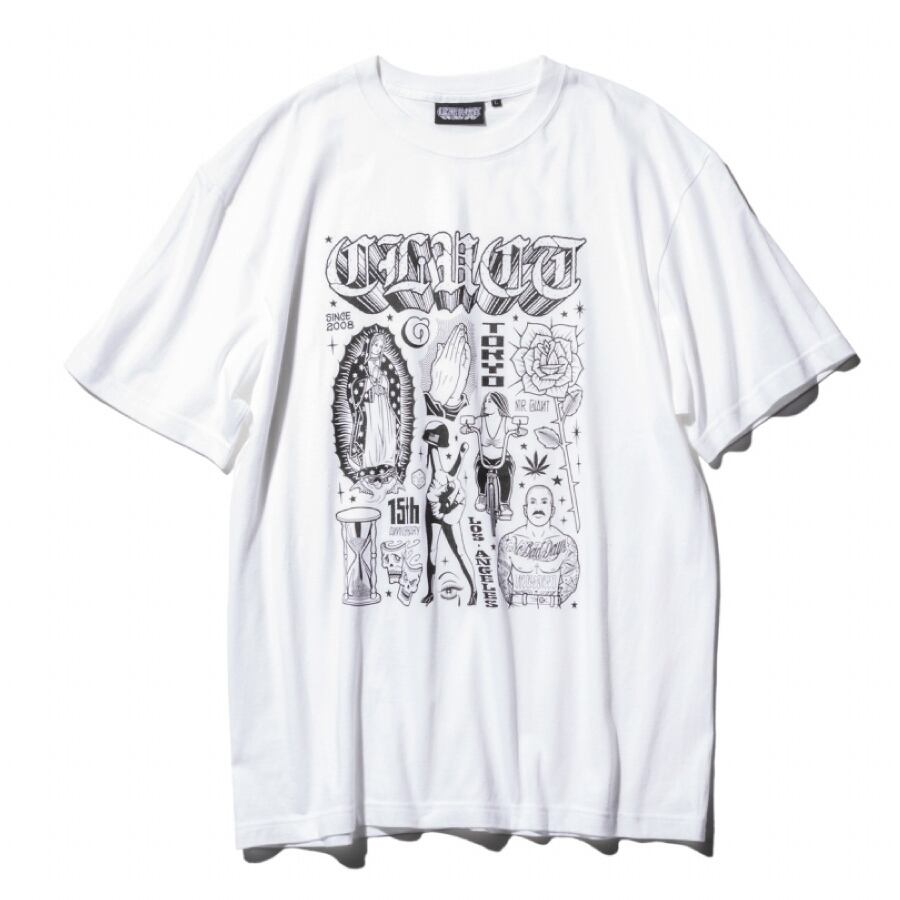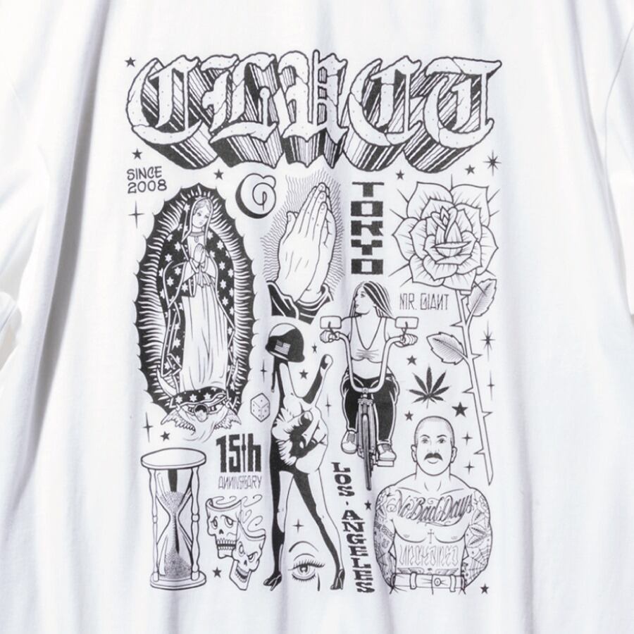 CLUCTブランド設立15周年を記念してリリースされる、アーティストMIKE GIANTとのスペシャルコレクションのS/S Tシャツ。