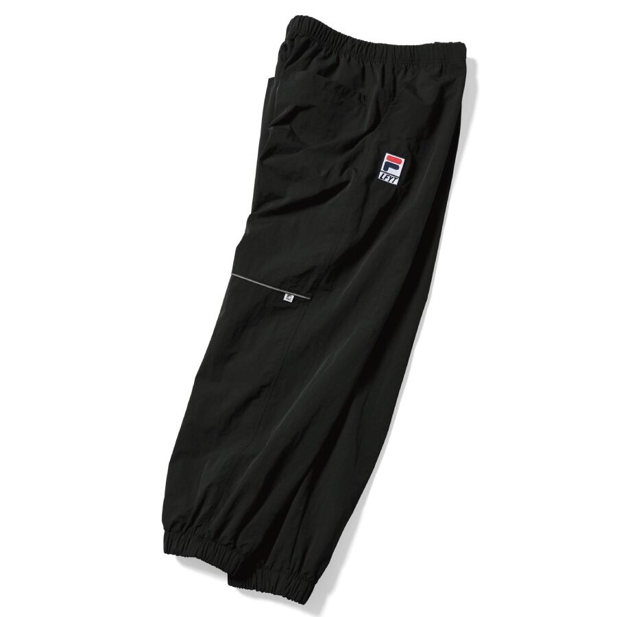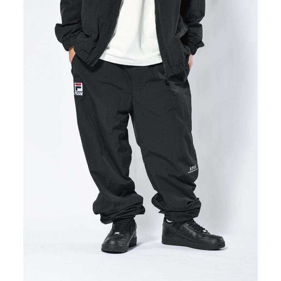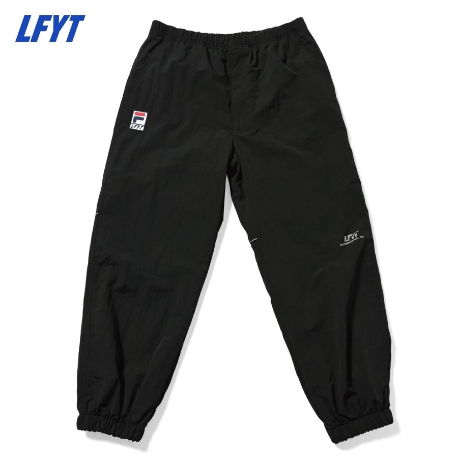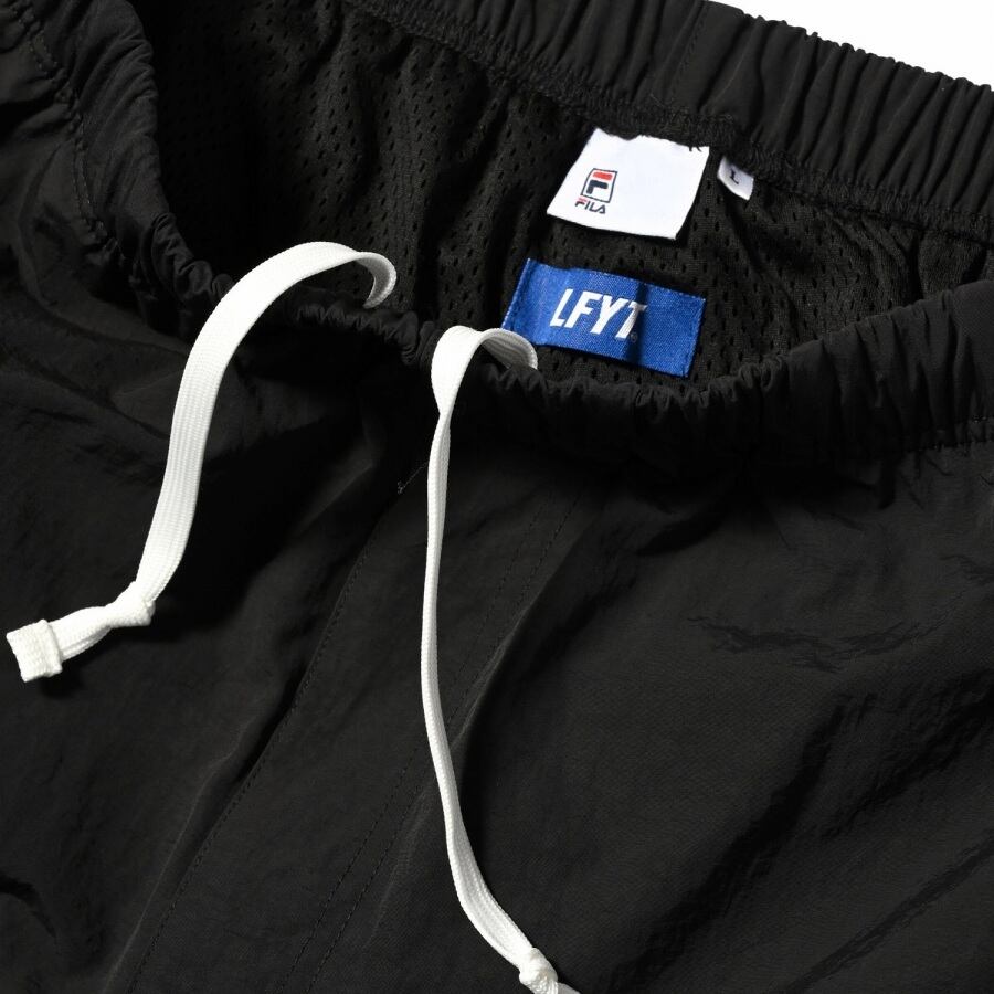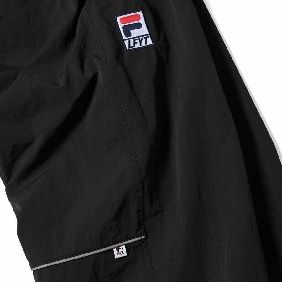 右ポケット付近にはLFYTとFILAのロゴを掛け合わせたロゴが刺繍され、左に膝下にはLFYT INTERNATIONAL INC.のロゴがリフレクターでプリント。