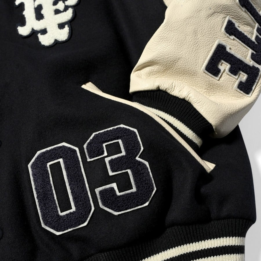 落ち着いた印象でスタジャンの王道カラー「ネイビー」を基調とした2トーンジャケット。