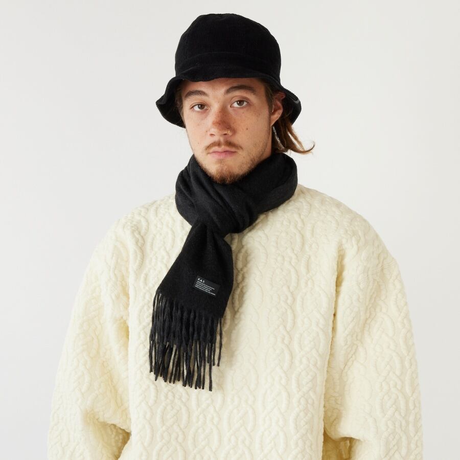 肌触りの良いカシミア素材をふんだんに使用したシンプルなフリンジマフラー。